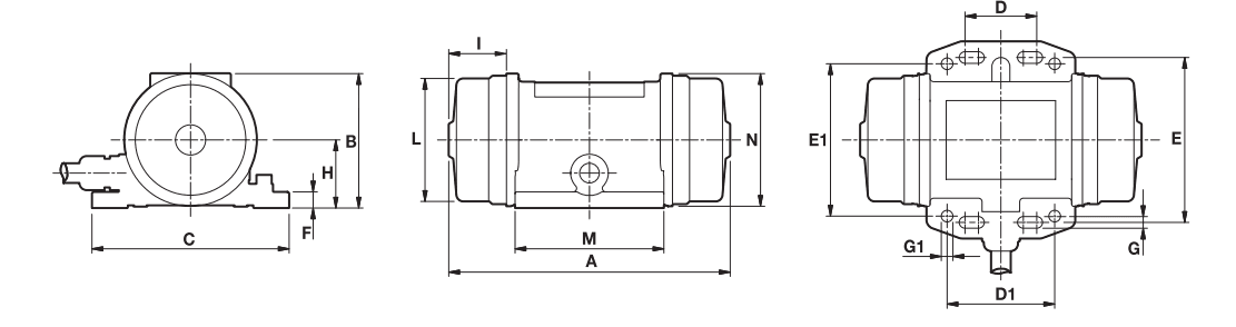 | A | B | C | D | D1 | E | E1 | G | øG | N° | F | H | I | L | M | N | Cable entry thread |