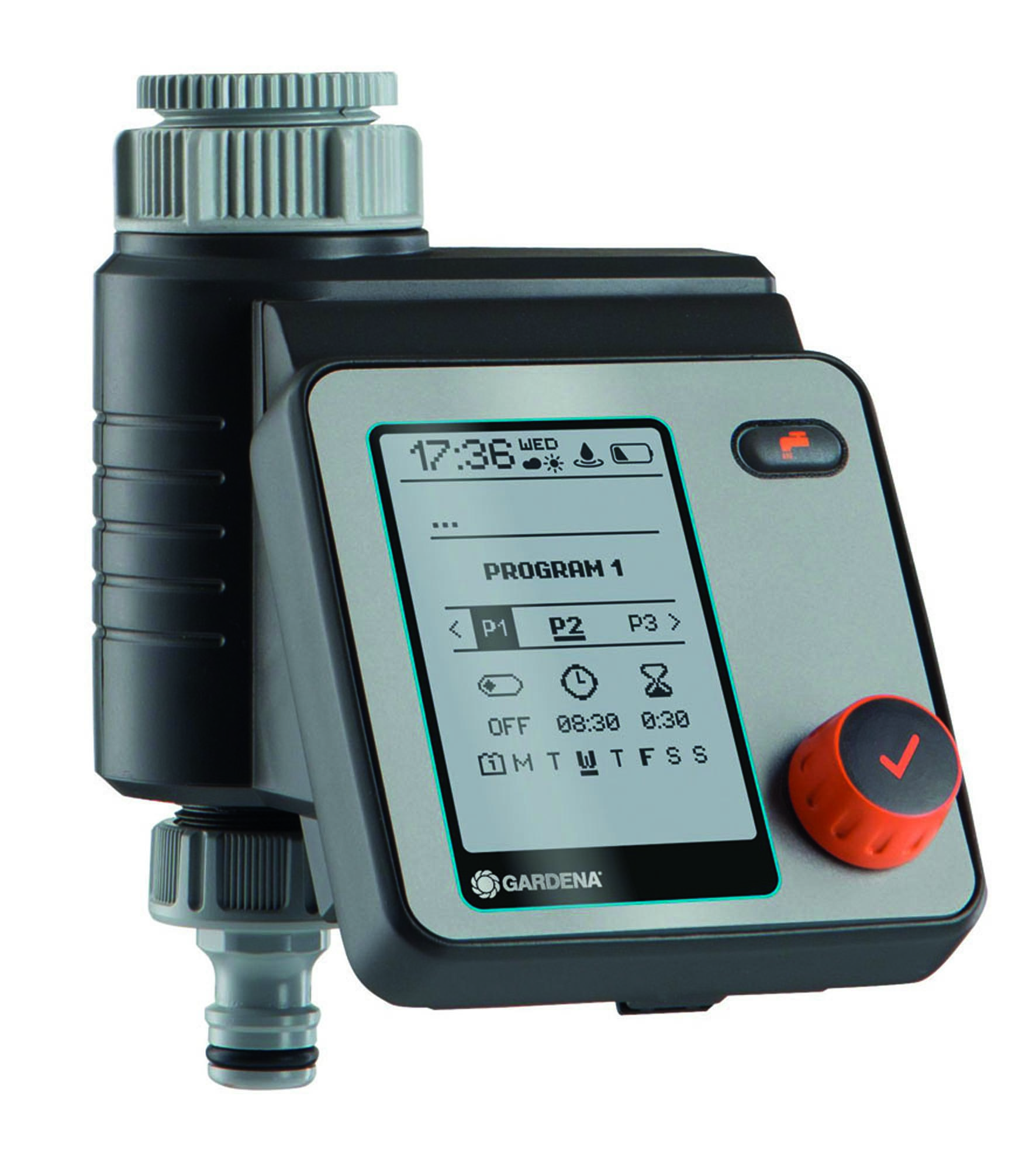 Με τον Προγραμματιστή Μπαταρίας Master της GARDENA, το πότισμα μπορεί να προγραμματιστεί με ευελιξία και ανάλογα με τις ανάγκες της κάθε περιοχής. Μπορούν να δημιουργηθούν έως και έξι διαφορετικοί και ανεξάρτητοι κύκλοι ποτίσματος. Ο προγραμματιστής λειτουργεί με μπαταρία, συνδέεται απευθείας με τη βρύση και λειτουργεί εύκολα χρησιμοποιώντας μόνο έναν διακόπτη, ο οποίος περιστρέφεται για την επιλογή των δεδομένων και πιέζεται για την επιβεβαίωση. Μια ευανάγνωστη οθόνη γραφικών LCD δείχνει όλες τις ρυθμίσεις με μια ματιά. Το μενού μπορεί να επιλεγεί σε 10 γλώσσες. Η μονάδα προστασίας από τις καιρικές συνθήκες μπορεί να αφαιρεθεί. Είναι εύκολο να προσαρμόσετε κεντρικά τη διάρκεια του ποτίσματος ή να διακόψετε όλα τα ποτίσματα στην περίπτωση κακών καιρικών συνθηκών. Η μονάδα είναι ιδανική για τον έλεγχο του Αυτόματου Διανομέα Ποτίσματος GARDENA. Ο Προγραμματιστής Μπαταρίας Master μπορεί επίσης να χρησιμοποιηθεί σε συνδυασμό με ένα Υγρασιόμετρο GARDENA.