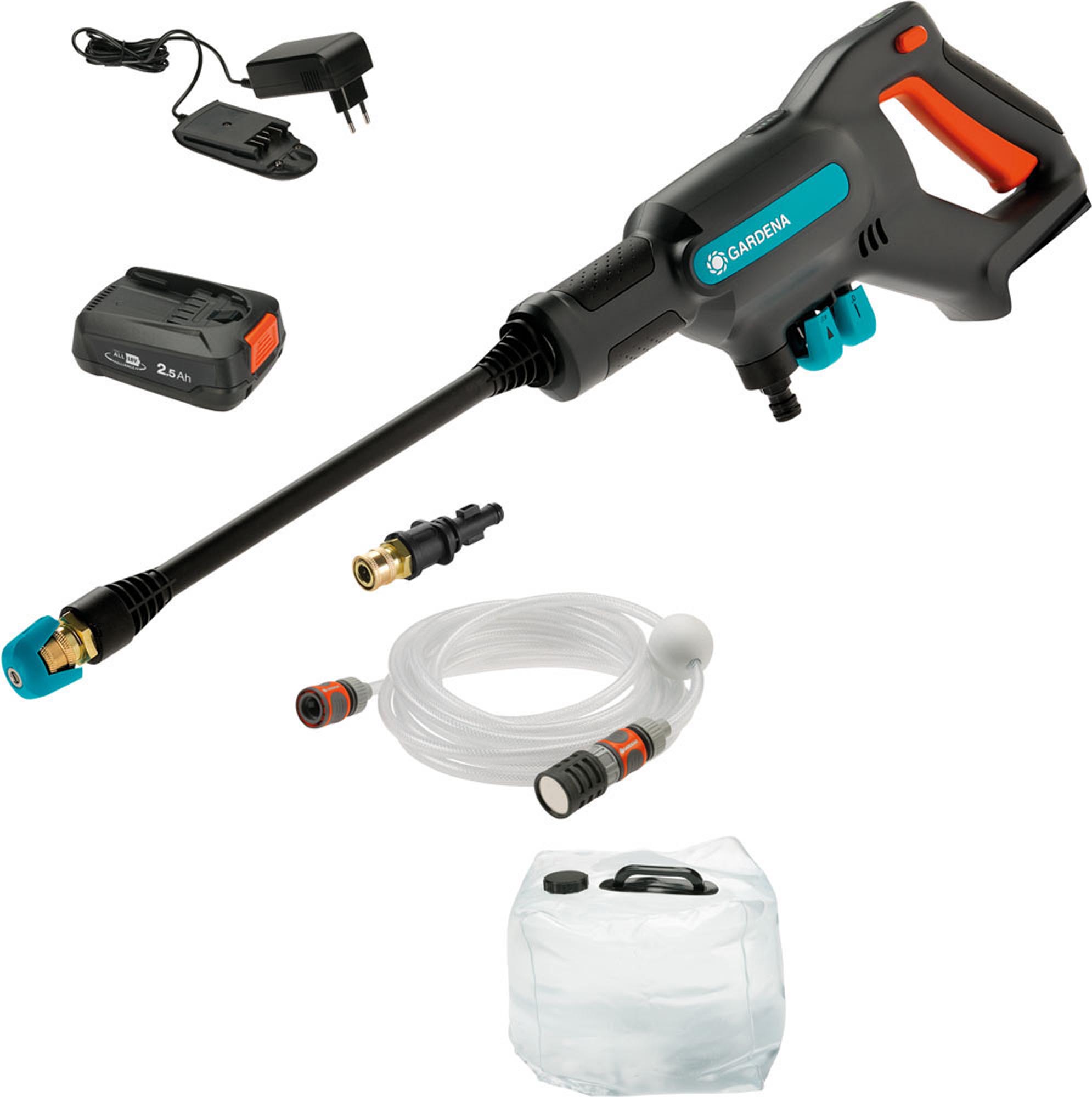 Ανεξάρτητο πλυστικό πιστόλι μπαταρίας μεσαίας πίεσης για κινητό και γρήγορο καθαρισμό από επίμονη βρωμιά. Mπορεί να συνδεθεί με σωλήνα για αναρρόφηση νερού σε βάθος έως 2m πχ. βαρέλι, λίμνη κτλ