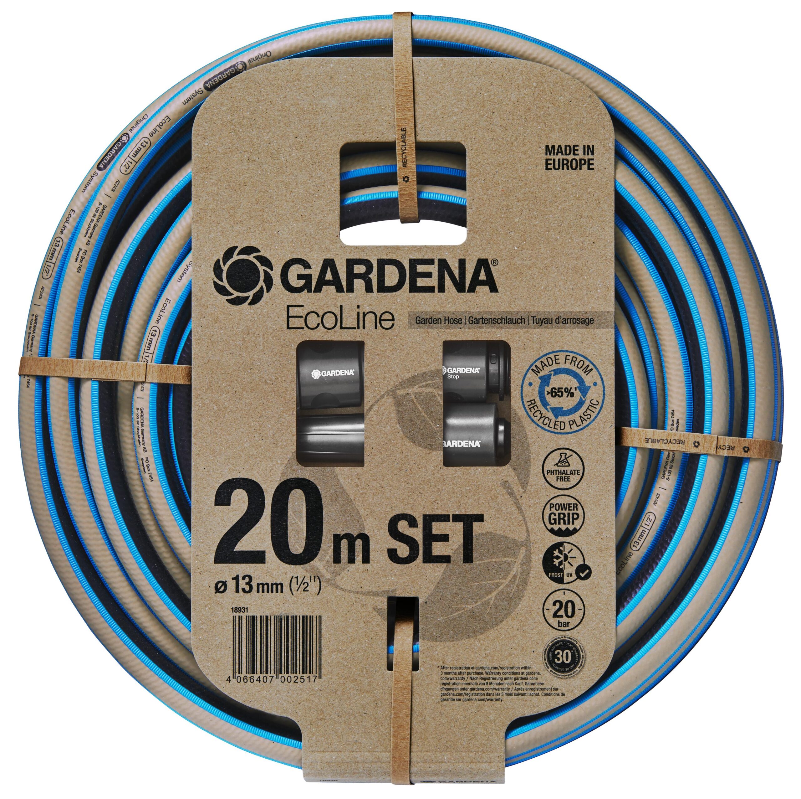 Το βιώσιμο Σετ λάστιχου EcoLine 13 m (1/2″)με ακροφύσιο και ταχυσυνδέσμους της GARDENA σάς εξοπλίζει με όλα όσα χρειάζεστε για το πότισμα του κήπου με τρόπο φιλικό προς το περιβάλλον. Μπορείτε να ξεκινήσετε αμέσως. Το πρακτικό σετ περιλαμβάνει λάστιχο ποτίσματος μήκους 20 m, καθώς και εξαρτήματα του Βασικού σετ EcoLine, όπως ρακόρ με συστολή, ταχυσύνδεσμο και ταχυσύνδεσμο stop, όπως και ένα ακροφύσιο καθαρισμού. Το λάστιχο είναι κατασκευασμένο από υλικό TPE και τα πλαστικά εξαρτήματα είναι κατασκευασμένα σε ποσοστό πάνω από 65% από ανακυκλωμένα υλικά, κυρίως οικιακά απορρίμματα όπως οι συσκευασίες. Το πλαστικό που χρησιμοποιείται για το Βασικό σετ κατασκευάζεται σε ποσοστό πάνω από 90% από ανακυκλωμένα υλικά, κυρίως από οικιακά απόβλητα. Εκτός από το ανακυκλωμένο πλαστικό, χρησιμοποιείται επίσης ανοξείδωτο μέταλλο ανακυκλωμένο σε ποσοστό πάνω από 35% για το μεταλλικό στοιχείο. Το σετ δεν έχει μόνο όμορφη εμφάνιση, αλλά και μεγάλη διάρκεια ζωής χάρη στην υψηλή ποιότητα κατασκευής. Με βάση όλα αυτά, το σετ είναι ιδανικό αν θέλετε να προστατεύετε ενεργά το περιβάλλον. Το λάστιχο EcoLine δεν περιέχει φθαλικές ενώσεις ή άλλες επιβλαβείς ουσίες (< 0,1%). Το προφίλ Power Grip εξασφαλίζει σταθερή σύνδεση και βέλτιστη συγκράτηση μεταξύ του λάστιχου ποτίσματος και του ταχυσυνδέσμου. Το λάστιχο είναι ευέλικτο και ελαφρύ κατά τη χρήση. Το σετ είναι ανθεκτικό στην υπεριώδη ακτινοβολία και τον παγετό, οπότε μπορείτε να το φυλάσσετε σε εξωτερικούς χώρους σε όλη τη διάρκεια του έτους. Η πίεση θραύσης του λάστιχου είναι 20 bar. Η επιλογή "2 σε 1" του ακροφυσίου καθαρισμού προσφέρει τον κατάλληλο πίδακα ψεκασμού για διάφορες περιστάσεις. Μπορείτε να το προσαρμόζετε αδιαβάθμητα για να δημιουργήσετε έναν ισχυρό, εστιασμένο πίδακα για εργασίες καθαρισμού ή έναν χαλαρό πίδακα ραντίσματος για το πότισμα. Ο ταχυσύνδεσμος stop που υπάρχει στο σετ σας επιτρέπει να αλλάζετε εξαρτήματα χωρίς να πηγαίνετε στη βρύση: Το νερό σταματά αυτόματα όταν αφαιρείτε το εξάρτημα και αρχίζει ξανά να ρέει μόνο αφού τοποθετήσετε ένα νέο εξάρτημα. Το Σετ λάστιχου EcoLine 13 mm (1/2") με ακροφύσιο και συνδέσμους της GARDENA είναι ένα βιώσιμο, ποιοτικό προϊόν που κατασκευάζεται στην Ευρώπη και υποστηρίζεται από την GARDENA με 30ετή εγγύηση, αφού γίνει καταχώρηση του προϊόντος στη διεύθυνση gardena.com/registration εντός 3 μηνών από την αγορά. Μια φυσική επιλογή για όσους έχουν πάθος με τον κήπο. Η νέα σειρά EcoLine. Κατασκευή με γνώμονα την βιωσιμότητα. Καλαίσθητη σχεδίαση. Υψηλή αντοχή.