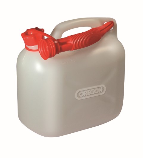 Δοχείο καυσίμου 5 λίτρων. Λευκό, πλήρες, με εύκαμπτο στόμιο. Τα δοχεία καυσίμου της OREGON είναι σύμφωνα με τους αυστηρούς κανονισμούς ασφαλείας UN/BAM.