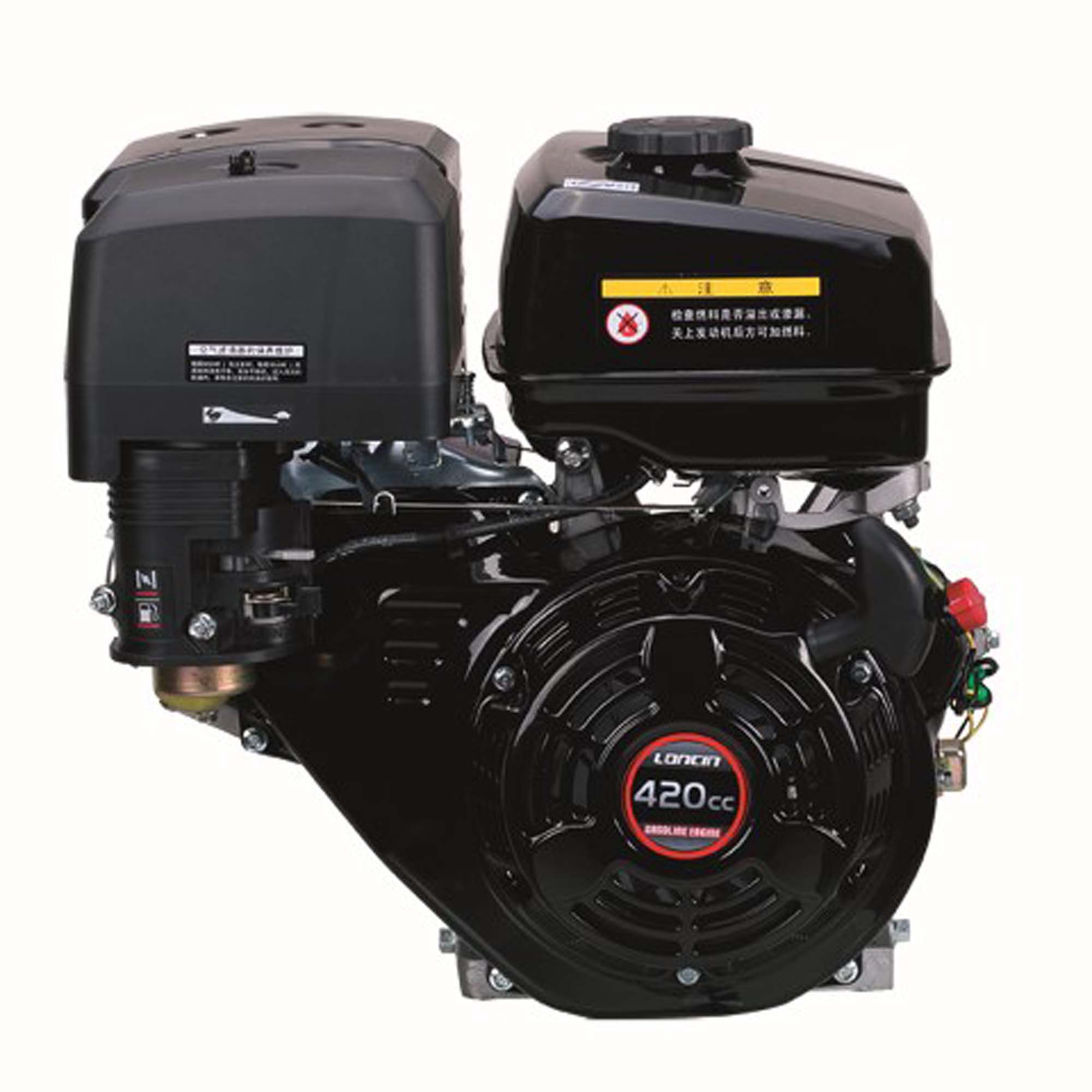 Ο μονοκύλινδρος αερόψυκτος Κινητήρας Βενζίνης G420F, 420cc, 12,23 ίππων, με ηλεκτρική εκκίνηση (μίζα) είναι οριζόντιου άξονα και έχει σχεδιαστεί και κατασκευαστεί από τη LONCIN, έναν από τους μεγαλύτερους και πλέον ποιοτικούς κατασκευαστές βενζινοκινητήρων, βενζινοκίνητων ηλεκτροπαραγωγών ζευγών και βενζινοκίνητων σκαπτικών στον κόσμο. Διατίθεται με άξονα με σφήνα διαμέτρου 25,4mm. Ο καινοτόμος σχεδιασμός του, η κατασκευαστική πείρα και ο συνεχής και αυστηρός ποιοτικός έλεγχος που εφαρμόζει η εταιρία σε όλα τα στάδια της κατασκευής διασφαλίζουν την απρόσκοπτη λειτουργία, την μεγάλη διάρκεια ζωής και την υψηλού επίπεδου και οικονομική απόδοσή του για τη χρήση που προορίζεται, κάτω από οποιεσδήποτε συνθήκες. Ο κινητήρας G420F πληροί και τις πλέον απαιτητικές προδιαγραφές ασφάλειας για τον χρήστη και προστασίας του περιβάλλοντος, τόσο της Ευρωπαϊκής Ένωσης όσο και των Η.Π.Α. (EPA& CARB).