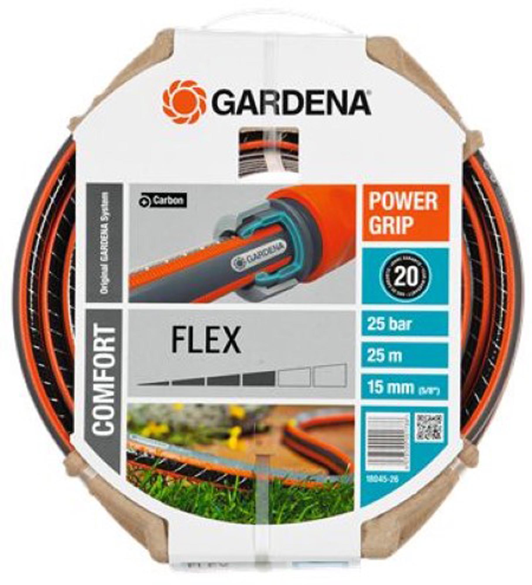 Το Λάστιχο Flex Comfort της Gardena, με την τεχνολογία Power Grip, εγγυάται την τέλεια σύνδεση μεταξύ λάστιχου και ταχυσυνδέσμου. Χάρη στη νέα τεχνολογία λάστιχο και ταχυδύνδεσμος αλληλοσυνδέονται όπως οι οδοντωτοί τροχοί. Το Power Grip καθιστά δυνατό αυτό που πάντα επιθυμούσαν οι ιδιοκτήτες κήπων, την αξιόπιστη σύνδεση με τέλεια δύναμη συγκράτησης. Ένα θετικό στοιχείο αυτής της τεχνολογίας είναι ότι το λάστιχο διπλώνεται πιο εύκολα και σύρεται καλά. Χάρη στην ειδική πλέξη με δύο σπείρες που απλώνονται σε αντίθετες κατευθύνσεις, το εύκαμπτο λάστιχο είναι ανθεκτικό στην πίεση και διατηρεί το σχήμα του, ενώ ταυτόχρονα είναι και ευέλικτο και εύκολο στο χειρισμό. Δεν μπλέκεται σε κόμπους και δεν τσακίζει. Αυτές είναι οι καλύτερες προϋποθέσεις για μια άνετη και ευέλικτη χρήση στον κήπο σας. Εάν απαιτείται, μπορεί να συμπληρωθεί με τα εξαρτήματα και τις συσκευές σύνδεσης του Original Gardena System. Είναι απαλλαγμένο από επιβλαβείς πλαστικοποιητές (φθαλικές ενώσεις) και βαρέα μέταλλα και φυσικά ανθεκτικό στην υπεριώδη ακτινοβολία. Τα χοντρά τοιχώματα το καθιστούν ιδιαίτερα στιβαρό και ανθεκτικό. Πίεση: 25 bar. Εγγύηση: 20 έτη.
