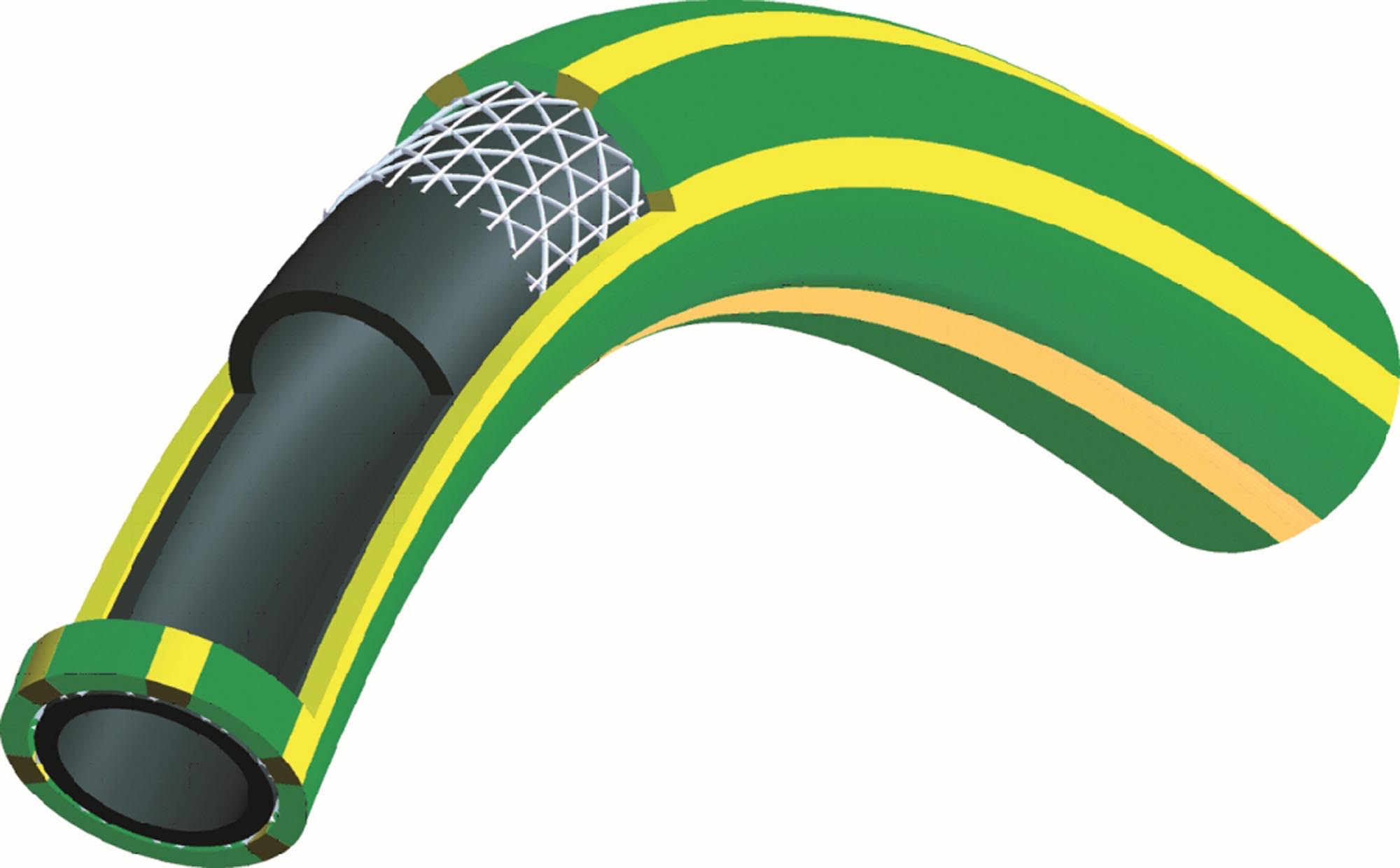 Ελαφρύς, ιδιαίτερα εύκαμπτος σωλήνας, με 3 στρώματα και πυκνή, κατά μήκος ενίσχυση, από πολυεστερικές ίνες.