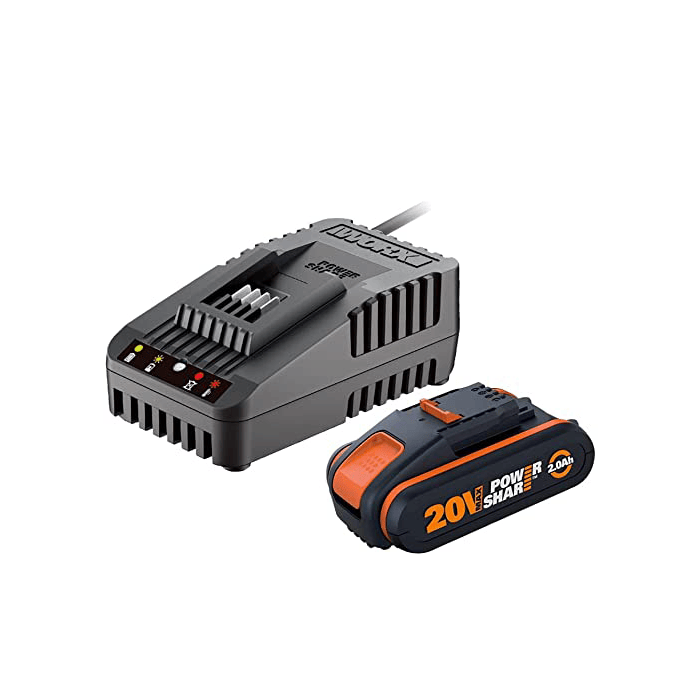 Σετ μπαταρίας 20V 2.0Ah και φορτιστής 2Α συμβατά με την πλατφόρμα POWERSHARE® για χρήση με όλα τα εργαλεία WORX